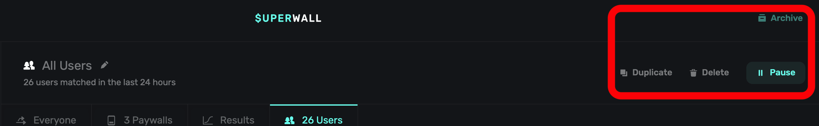 Archived audiences can be restored at any point. Paused campaigns are not evaluated by Superwall.