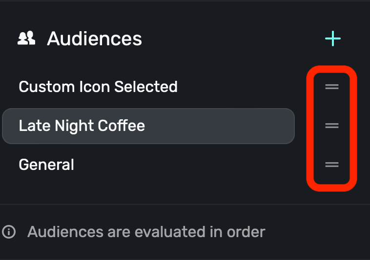 To change the order that Superwall evaluates audiences, simply drag and drop them in the left-hand sidebar of any opened campaign: